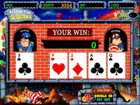 Первая рискованная игра состоит в том, что главный персонаж автомата раскладывает карты с тюремным смотрителем. На экране появляется 5 игральных карт. Эта версия риск игры традиционная для большинства игровых автоматов в сети. Одна карта принадлежит смотрителю. Остальные четыре закрыты. Выигрыш увеличится лишь в том случае, если узнику удастся вытащить карту выше, чем карта смотрителя. Если игроку не удается достать карту, достоинство которой выше, чем у надзирателя, то рискованный тур заканчивается, а клиент не получает никаких денежных выплат. К тому же, еще и теряет заработанный приз в последнем удачном спине.