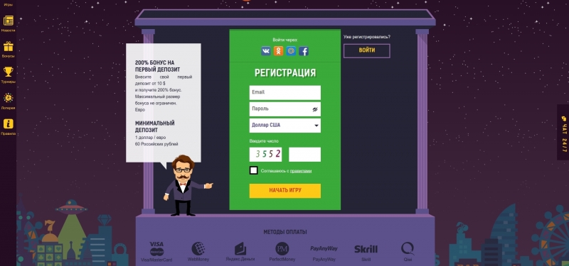 💰 Для игры на деньги пользователь при регистрации выбирает нужную валюту и платежную систему. Перечень методов пополнения и вывода денежных средств приводится на сайте. Также на портале указаны лимиты и сроки проведения операций в зависимости от системы платежа.