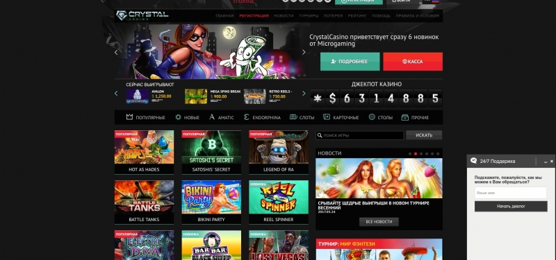 Обзор официального сайта Кристал Казино