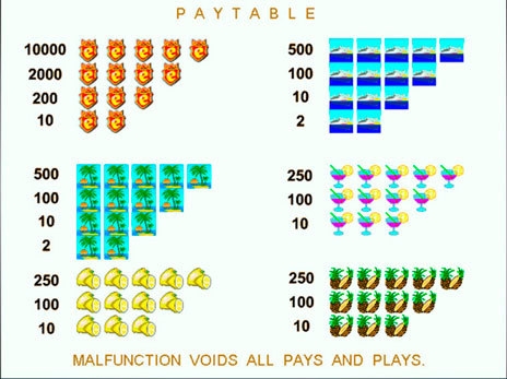 На вращающихся барабанах появляются изображения тропических фруктов, корабля для морских прогулок и вечеринок, костей, Спинов и многое другое.