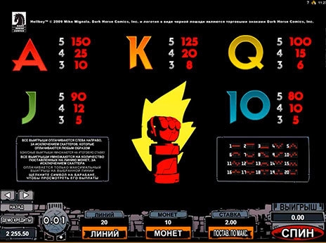 5 барабанов постоянно крутятся на игровом аппарате Hellboy. Поле автомата заполнено картинками, которые взяты из популярного комикса. Из них формируются призовые комбинации, которые приносят клиентам денежные выплаты.