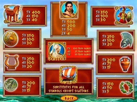 В видео слоте Одиссей не только выбранное музыкальное сопровождение отвечает заданной тематике. Так под мелодичные греческие напевы на игровых барабанах появляются амфоры, кифары, шлемы, троянский конь, древние монеты и многое другое.